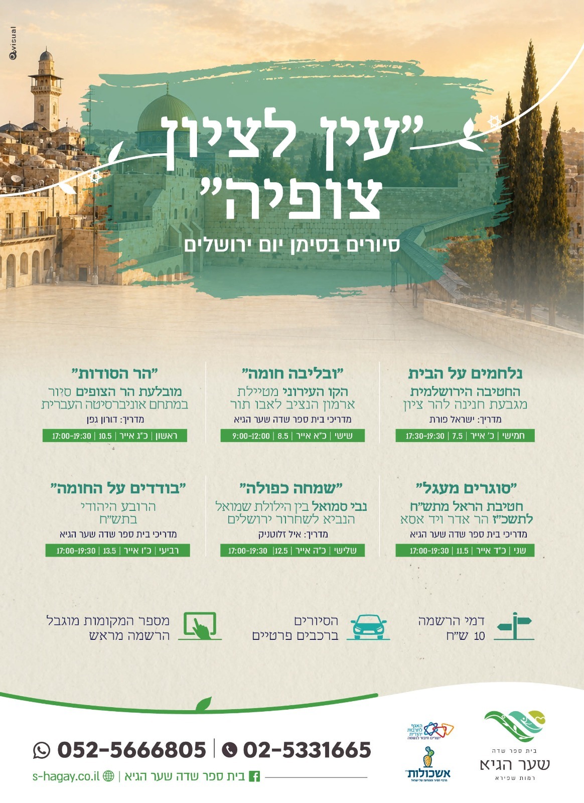 הודעת וואטצאפ/sms עם פרטים נוספים תשלח ביום הסיור.