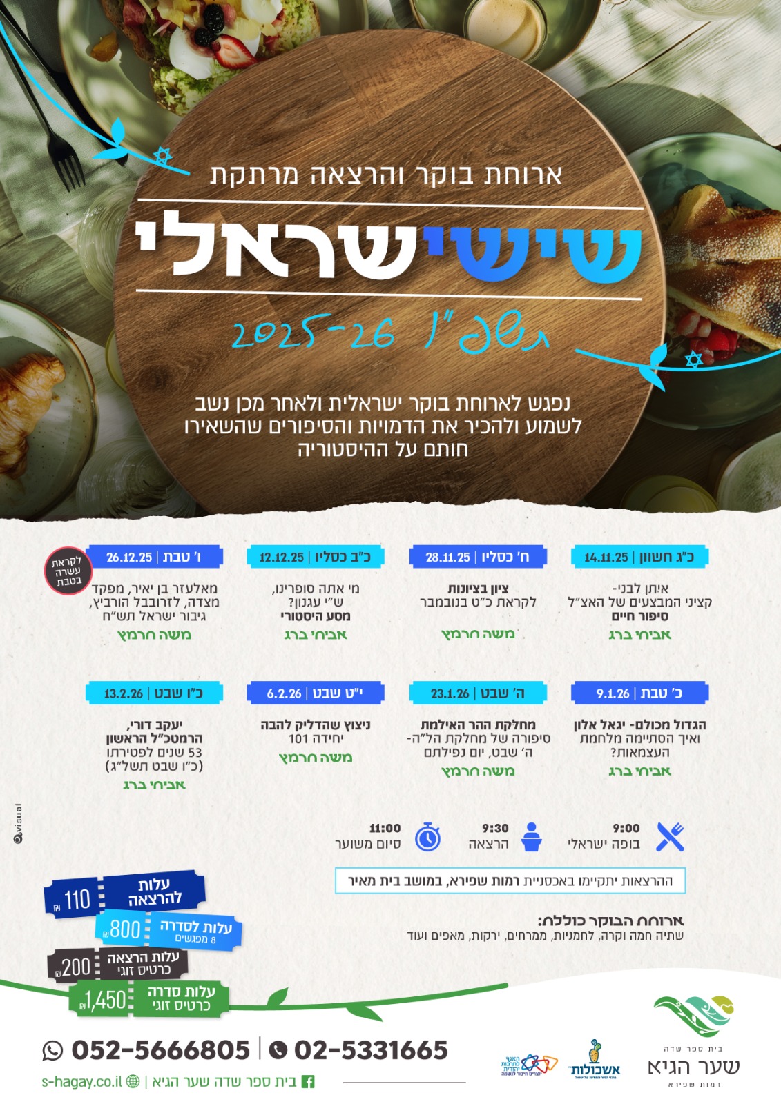 הודעת וואטצאפ/sms עם פרטים נוספים תשלח ביום הסיור.