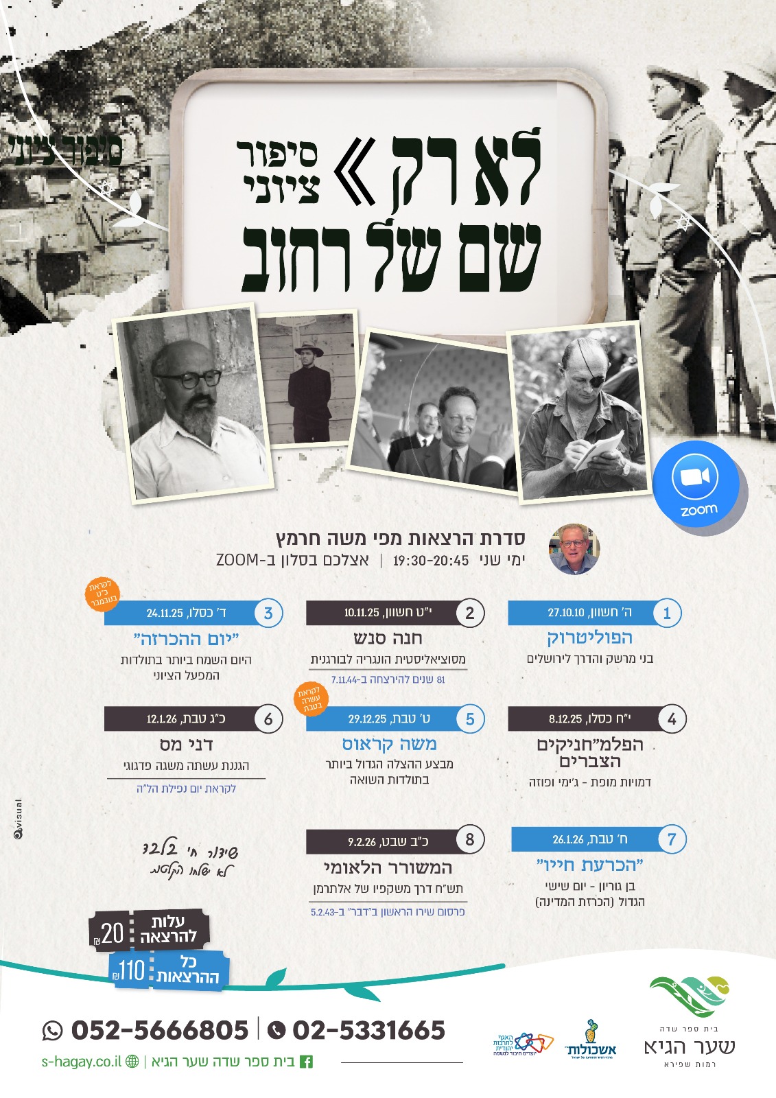 ההרצאות יועברו בזום. קישור יישלח במייל לאחר הרישום